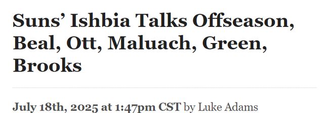伊什比亞表示,太陽隊現(xiàn)在致力于長期“以正確的方式”建設(shè)球隊,今年夏天的首要任務(wù)是引進(jìn)“更年輕、有潛力的”天賦型球員,同時為未來創(chuàng)造更大的工資帽靈活性。