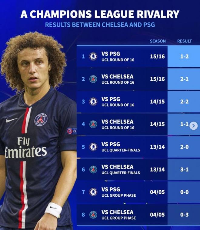 15-16賽季歐冠16強戰(zhàn):切爾西1-2巴黎、巴黎2-1切爾西(巴黎總比分4-2晉級)