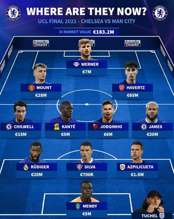 德轉(zhuǎn)列切爾西2021歐冠決賽首發(fā):哈弗茨當前身價最高 2人還在陣中