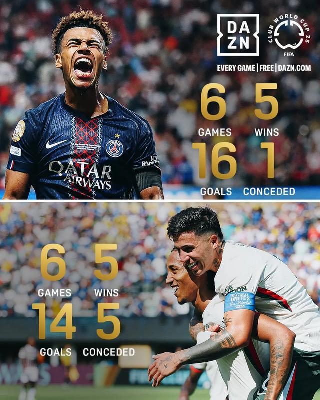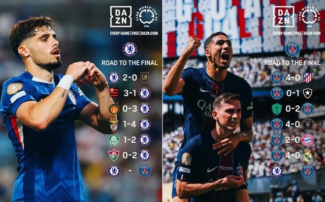 大巴黎是世俱杯決賽大熱門,Opta超級計算機的計算出大巴黎奪冠概率高達64.4%,大巴黎與切爾西的奪冠賠率是1.36比3.60,差距懸殊。恩里克的球隊從上賽季法國杯決賽開始,連續5場淘汰賽以18比0的完美成績進入決賽,包括半決賽對2024年歐冠冠軍皇馬的4比0。同樣在大都會球場,大巴黎僅用24分鐘就3比0領先,球場統治力過于驚人。